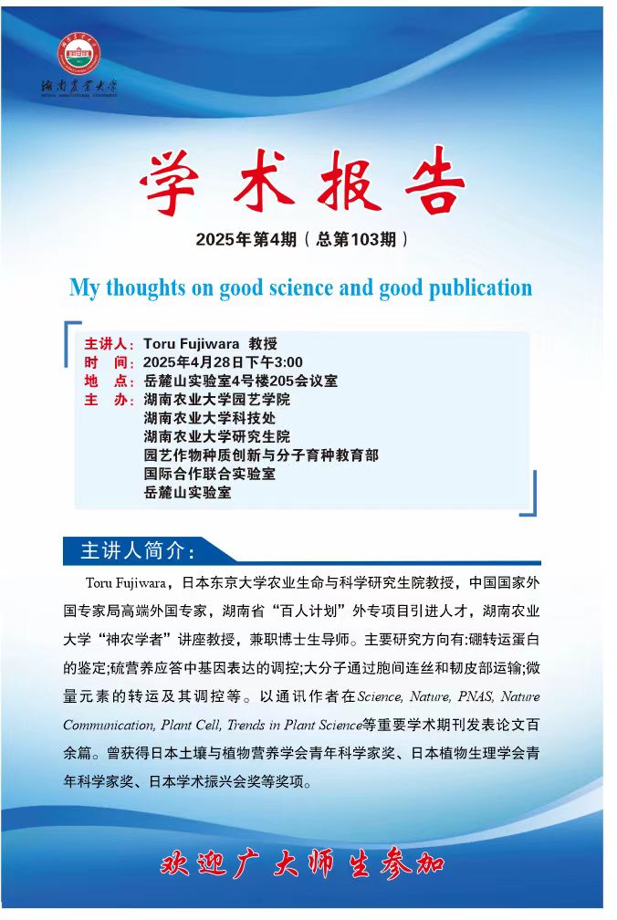 园艺讲坛第103期-名师讲坛:My thoughts on good science and good publication