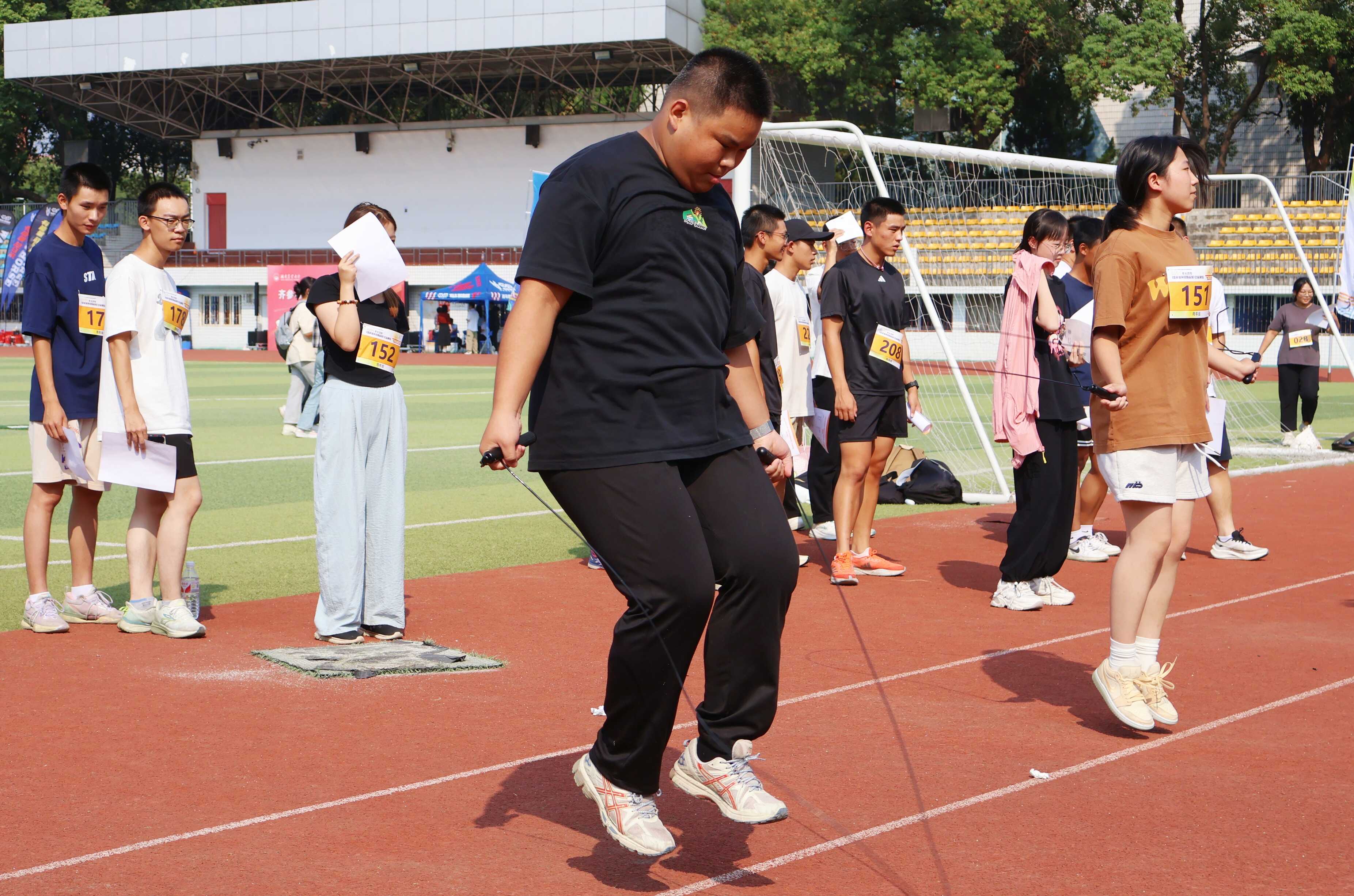比赛现场,运动健儿们进行了精彩而激烈的角逐。学院2024级新生毛安静同学,是学校2024年新生军事技能训练的优秀学员,对于本次比赛既感新鲜又充满挑战激情,“第一次参加体质健康比赛,赛事项目对于我们学生来说难度不大,但内容全面,要拿高分还是需要平时坚持不懈地锻炼,身体要具备优秀的耐力和爆发力。运动是一种挑战自我的乐趣,也应该是我们青年学生追求的生活方式”。