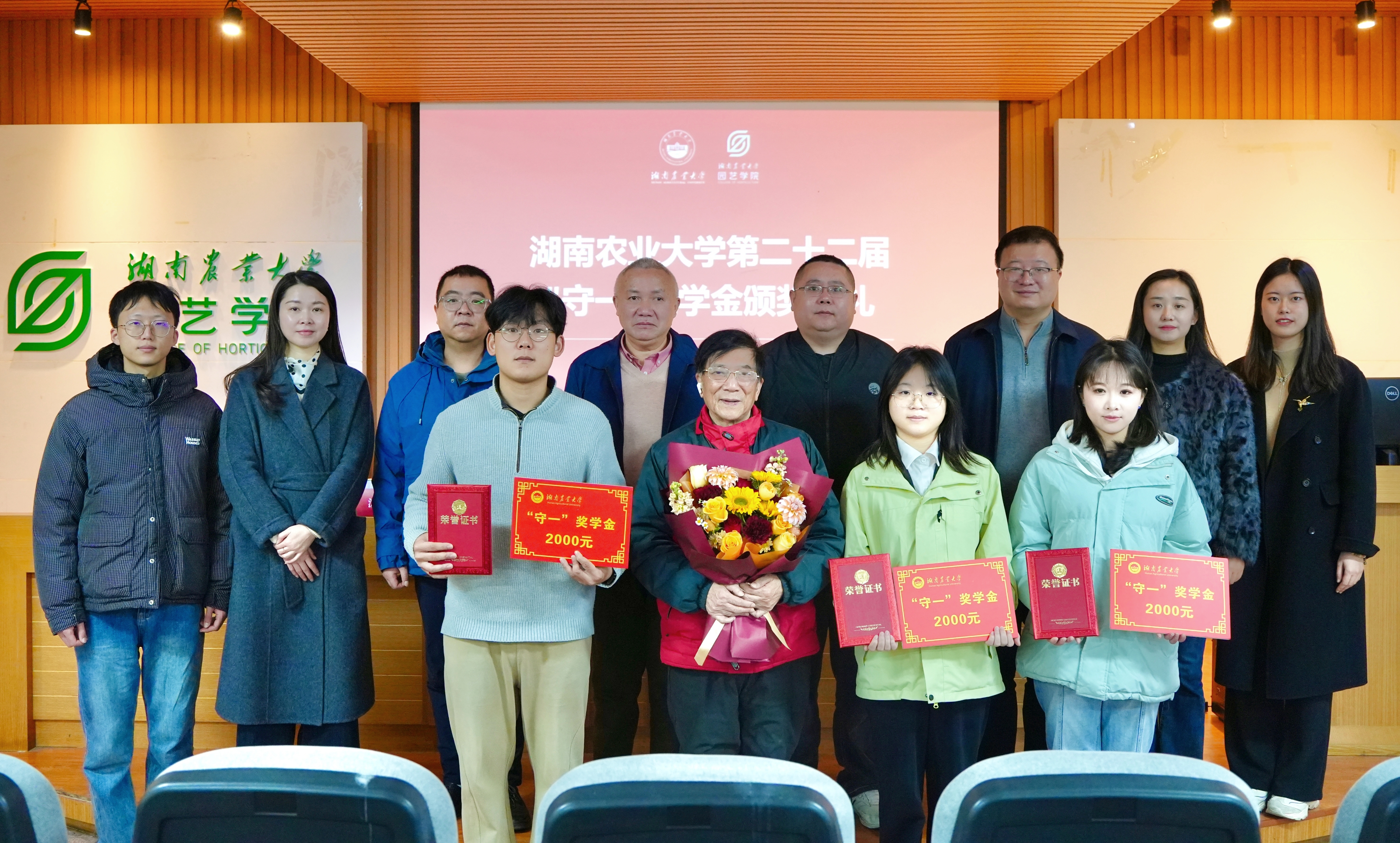本网讯(beat365英国官网网站 肖韵冬 廉皓颖)2026年1月9日上午,beat365英国官网网站第二十二届“守一”奖学金颁奖典礼在第十一教学楼北539会议室举行。“守一”奖学金设立者、原农工民主党湖南省委专职副主委、省人大常委会委员、省政府参事、我校原食品科技系副主任戴君惕教授,beat365英国官网网站院长武涛教授,校党委宣传部、统战部副部长成波,农学院党委副书记徐辉,食品科学技术学院党委副书记童玲,农学院徐庆国教授出席典礼。beat365英国官网网站、农学院、食品科学技术学院相关负责人、辅导员代表及学生代表参加活动。