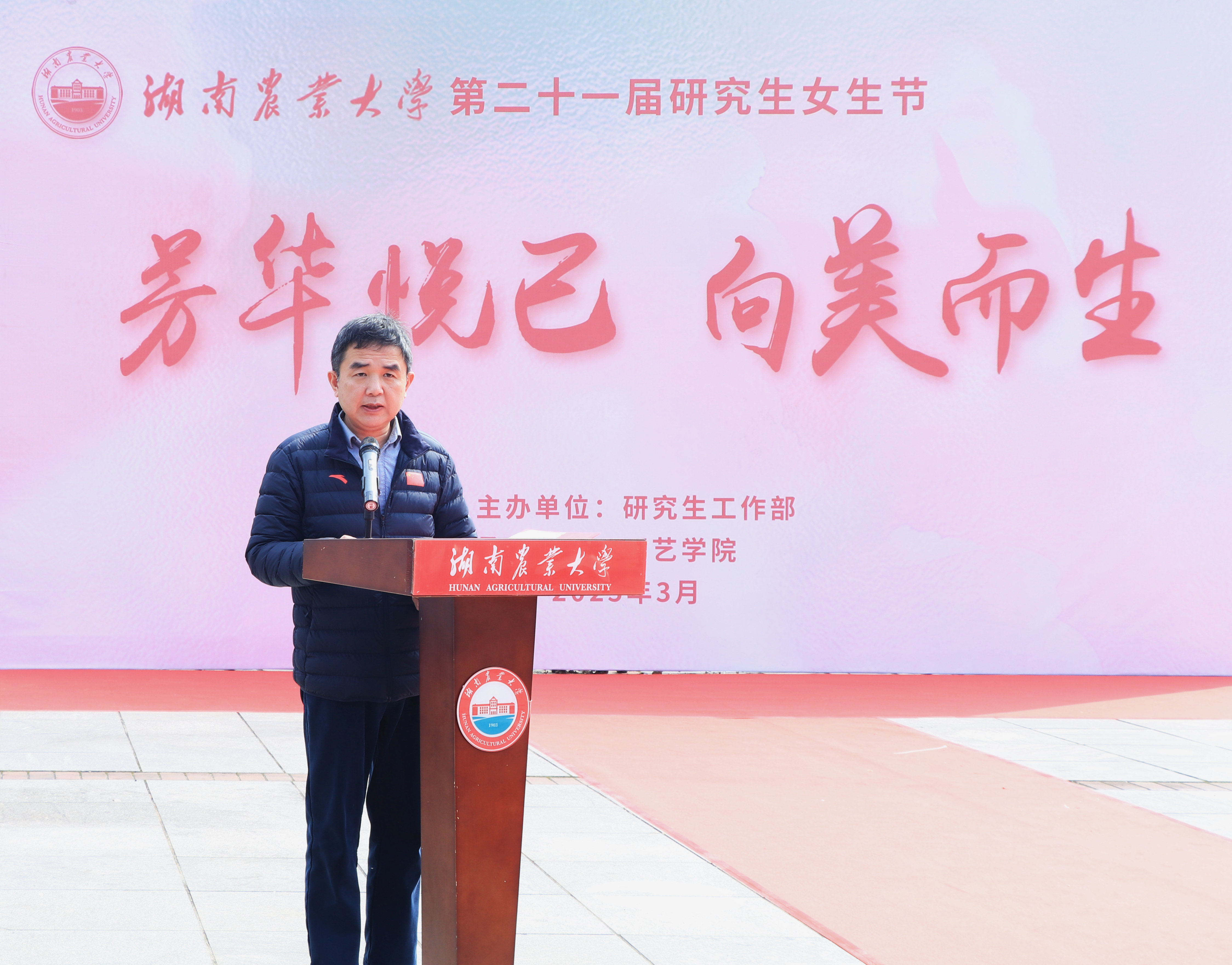 何长征向全体师生传递女生节的美好祝愿,强调女性作为“半边天”的独特魅力和价值,希望女研究生们发挥新时代女性自立自强的风范,全方位提升人格品味、生活质量、知识层面,做到“德智体美劳”全面发展,并鼓励参赛选手精诚合作,增进友谊。