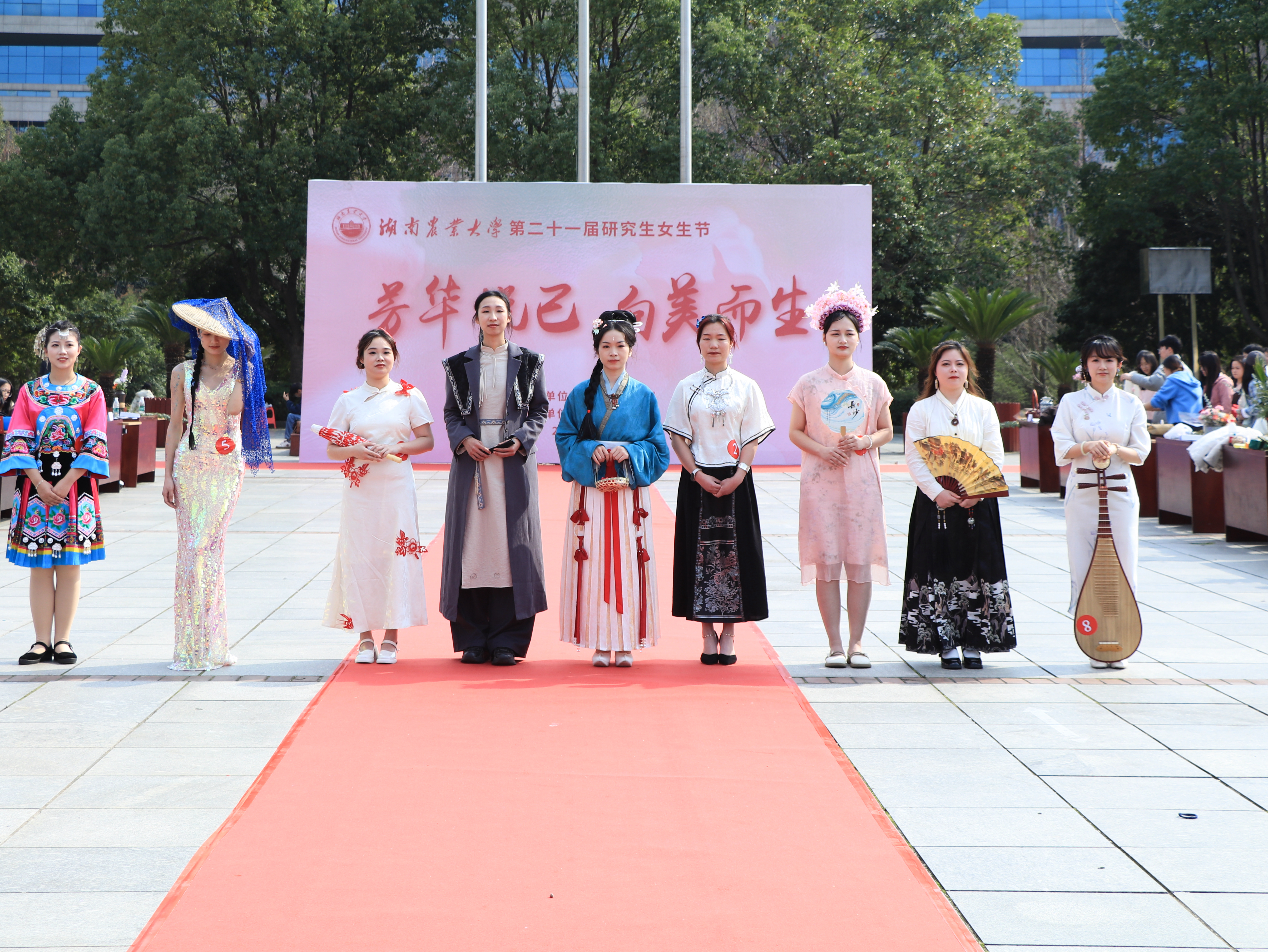 本次女生节活动分为“‘集市’行乐”游园会、“风采绽放·步履生花”造型秀大赛、“雅颂芳华”插花大赛三大板块。
